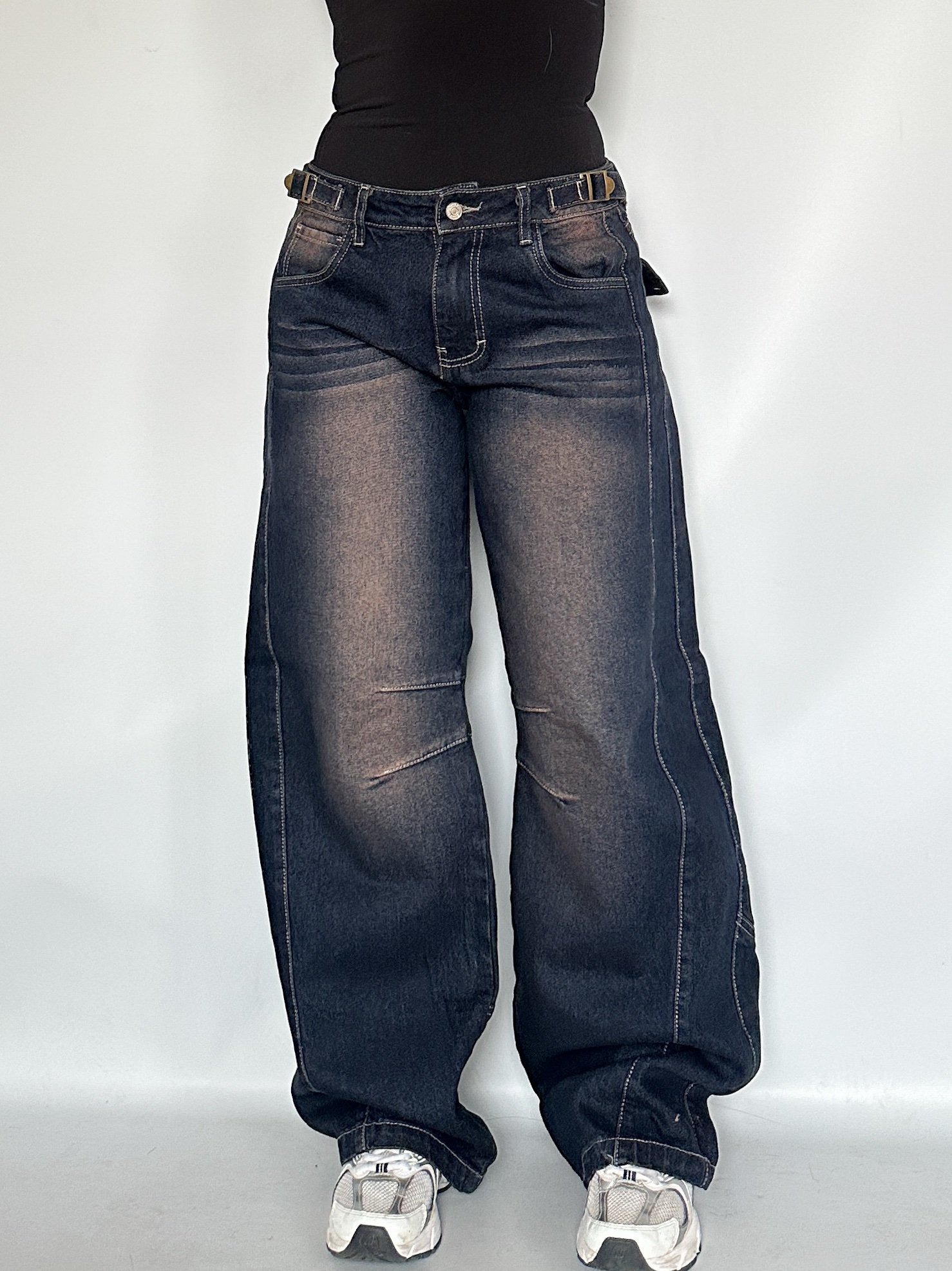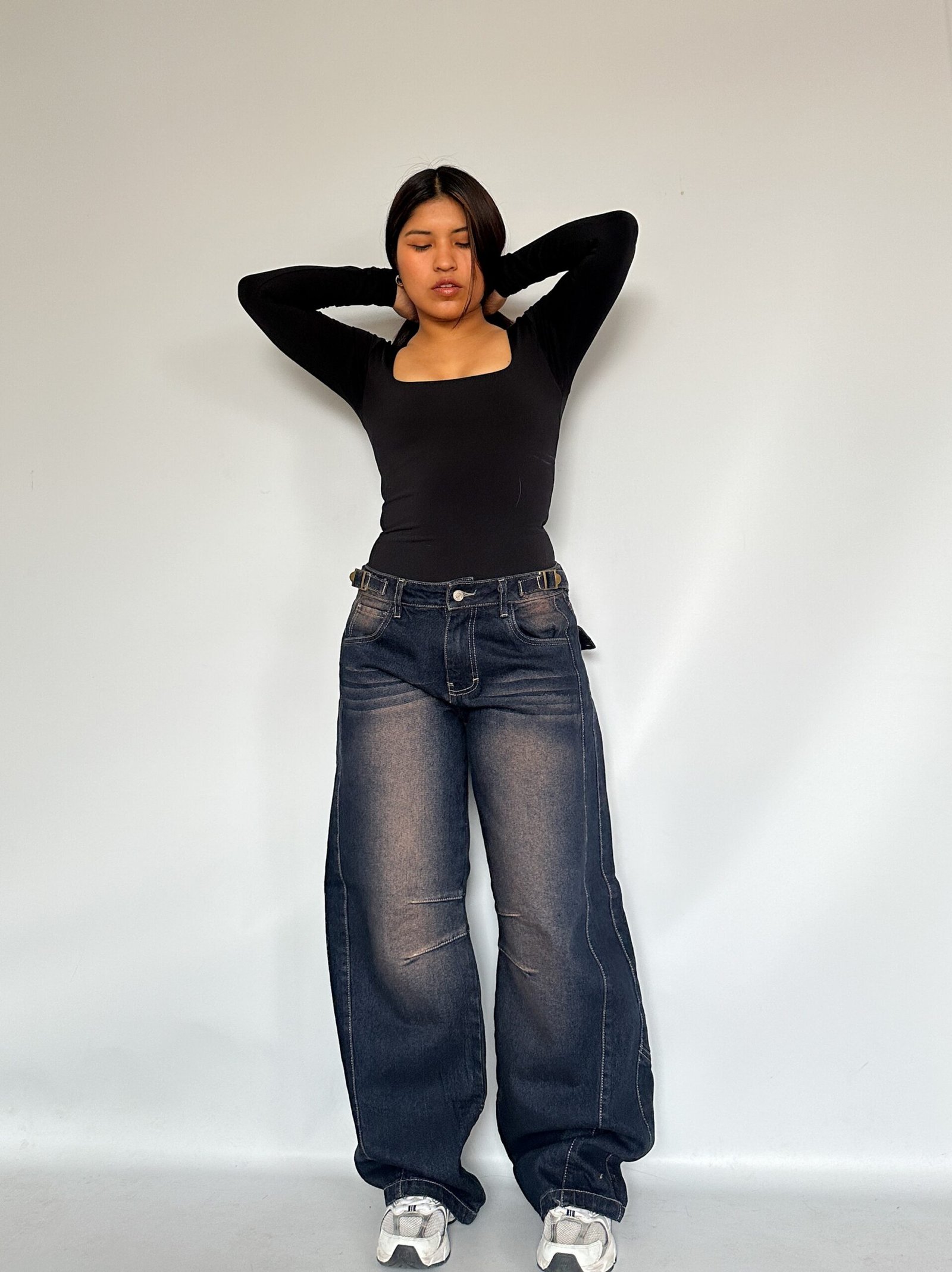 Jeans de fit barrel de tiro bajo. De piernas super anchas con detalle de pinzas.