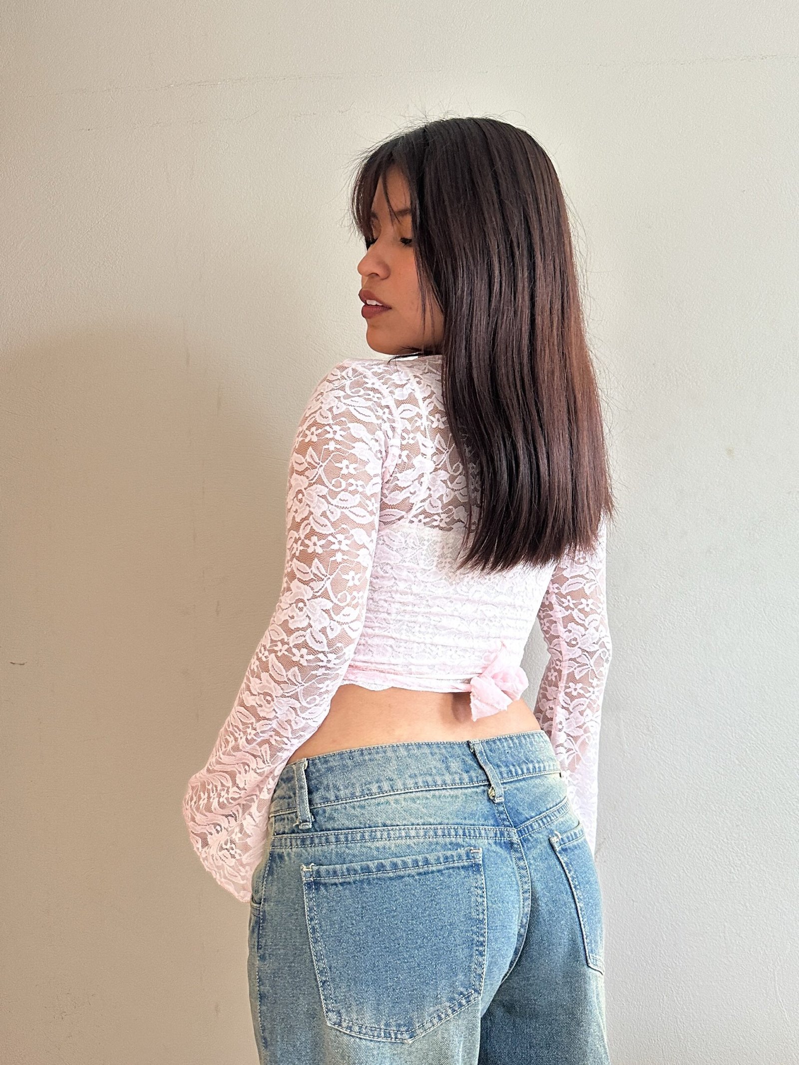 Capa de basta en punta, de mangas campana. Se puede usar de varias formas ya que su diseño es tipo envolvente.