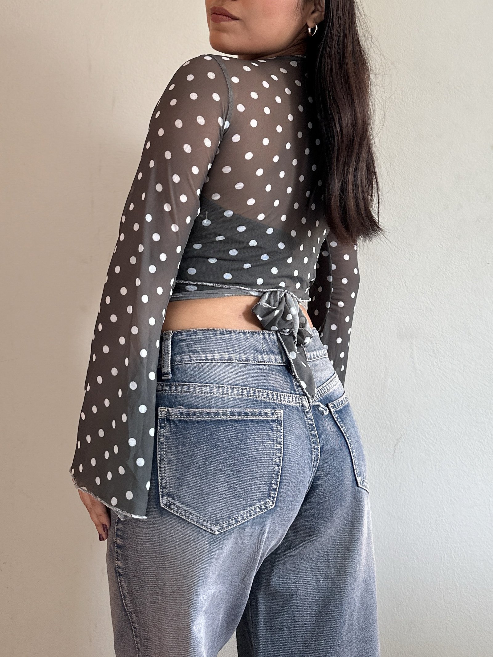 Capa de basta en punta, de mangas campana. Se puede usar de varias formas ya que su diseño es tipo envolvente.