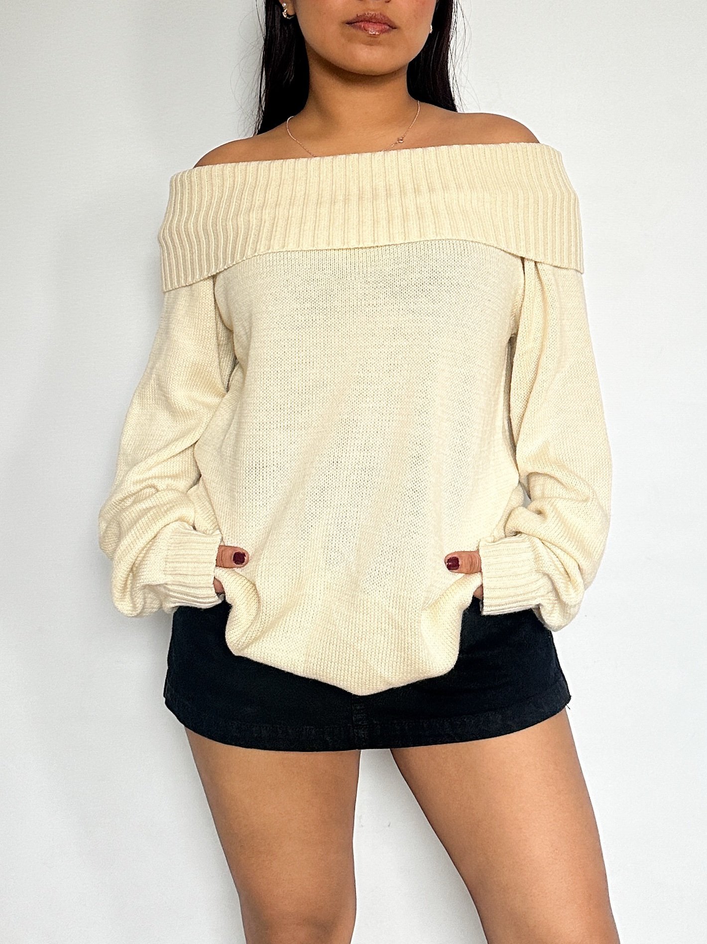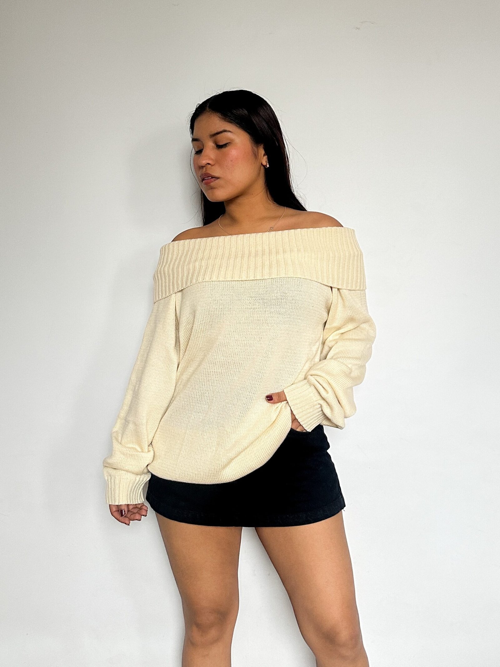 Chompa oversize de corte off shoulder, tejido en punto llano en el cuerpo y en el cuello y bordes de manga y basta en punto canelón. Al ser larga y suelta puedes usarla de diversas formas! Su tejido es tupido y compacto así que abriga delicioso.