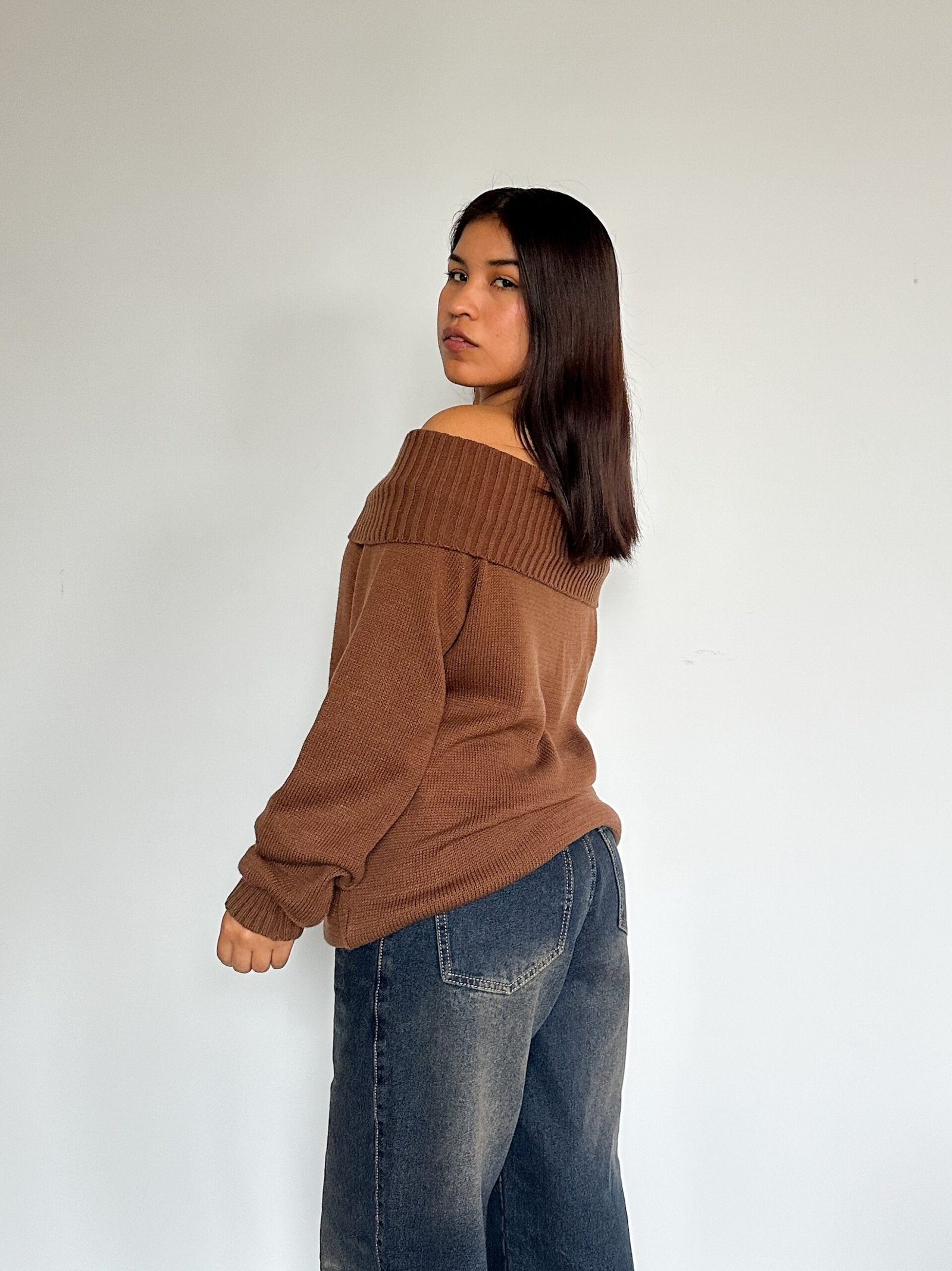 Chompa oversize de corte off shoulder, tejido en punto llano en el cuerpo y en el cuello y bordes de manga y basta en punto canelón. Al ser larga y suelta puedes usarla de diversas formas! Su tejido es tupido y compacto así que abriga delicioso.
