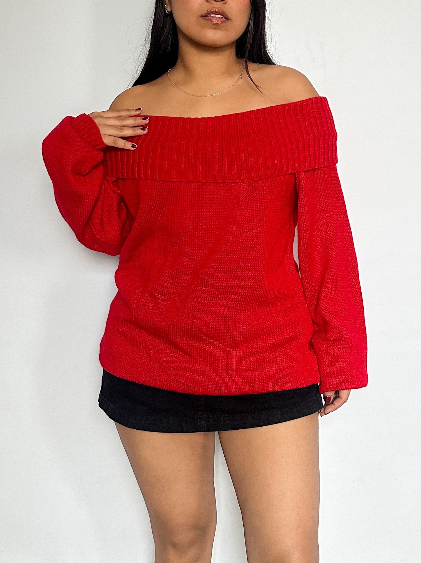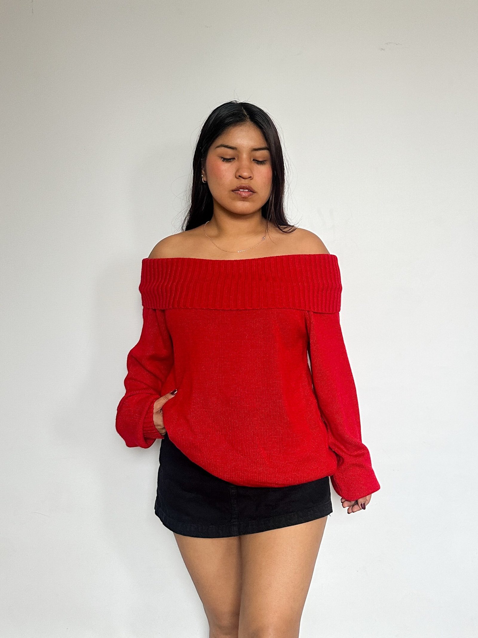 Chompa oversize de corte off shoulder, tejido en punto llano en el cuerpo y en el cuello y bordes de manga y basta en punto canelón. Al ser larga y suelta puedes usarla de diversas formas! Su tejido es tupido y compacto así que abriga delicioso.