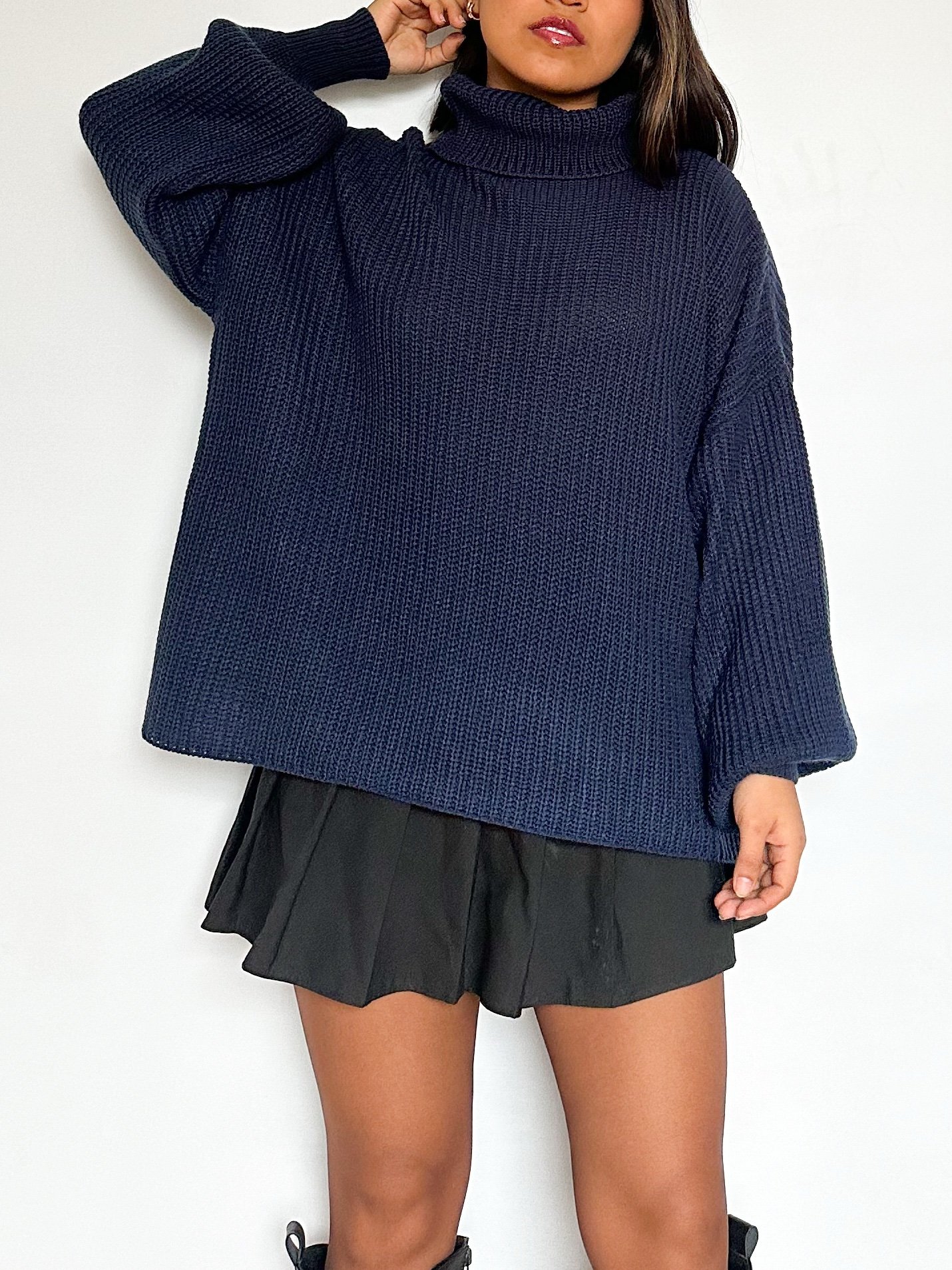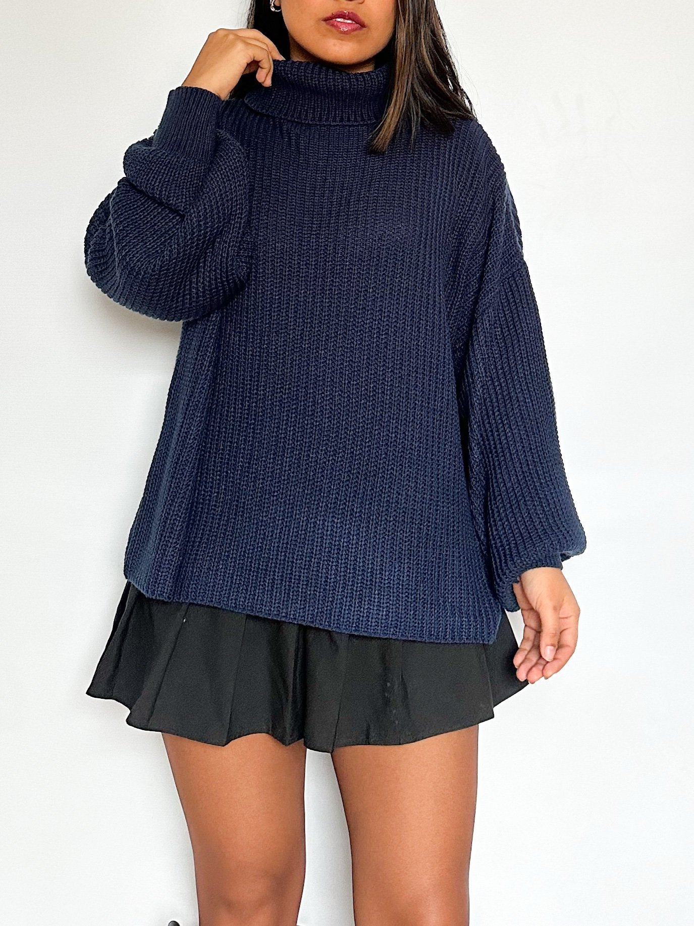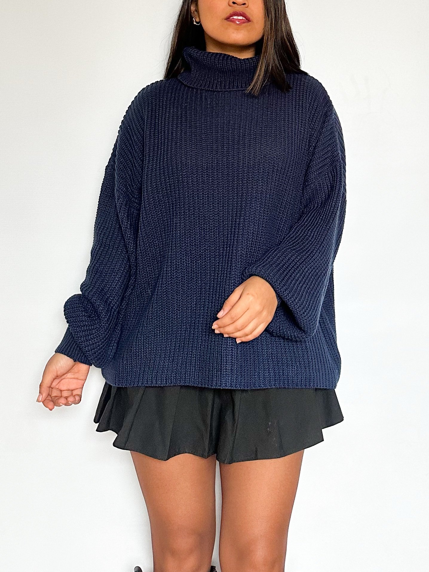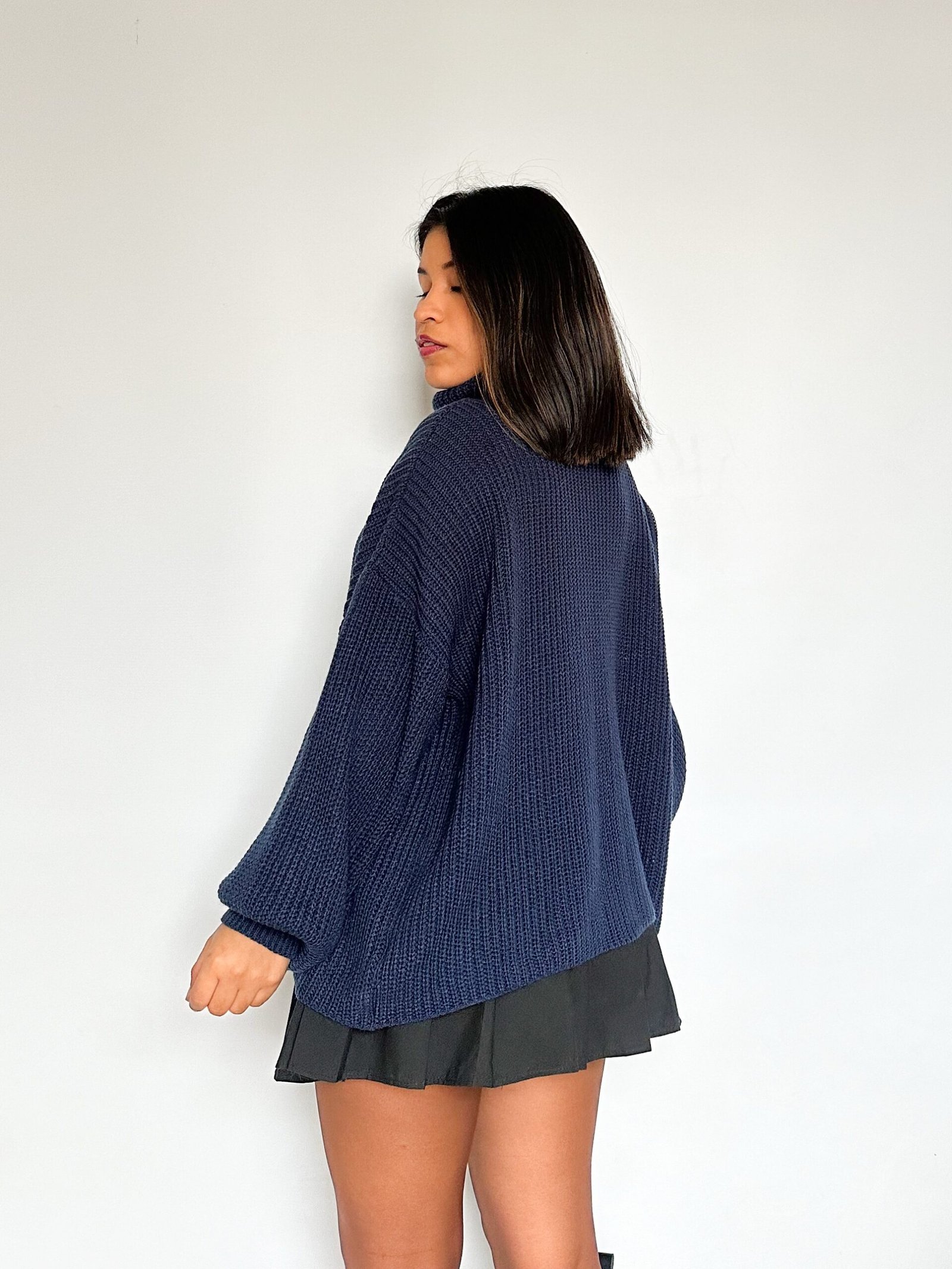Chompa de cuello tortuga oversize de mangas tipo globo.