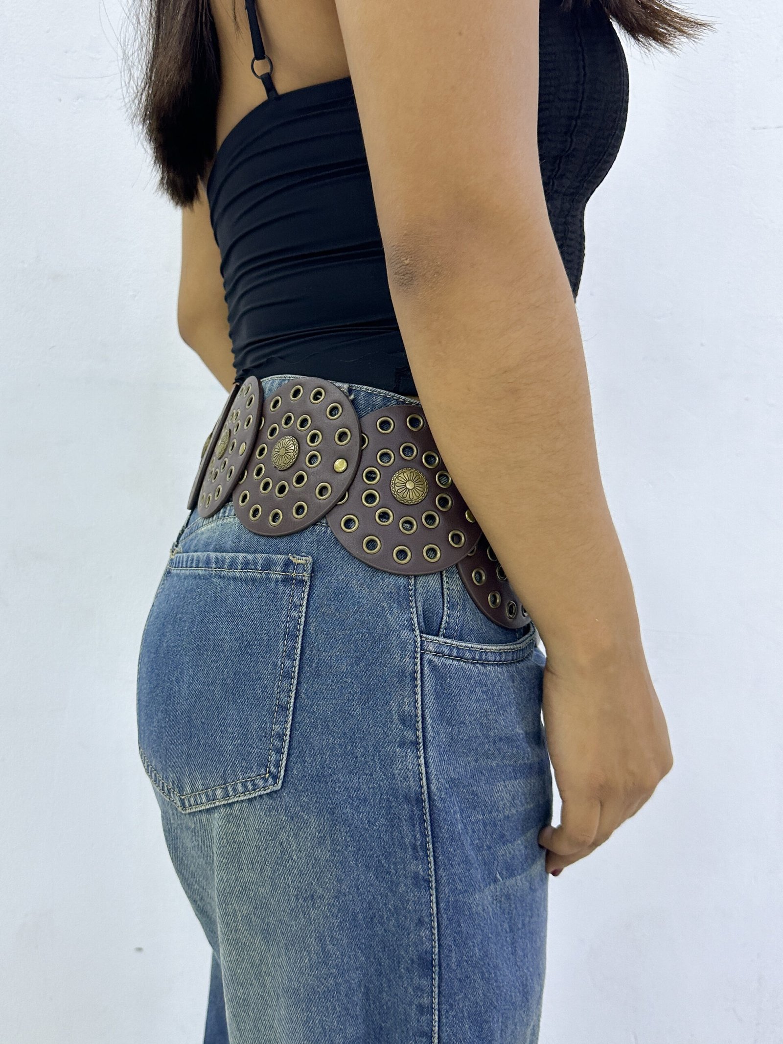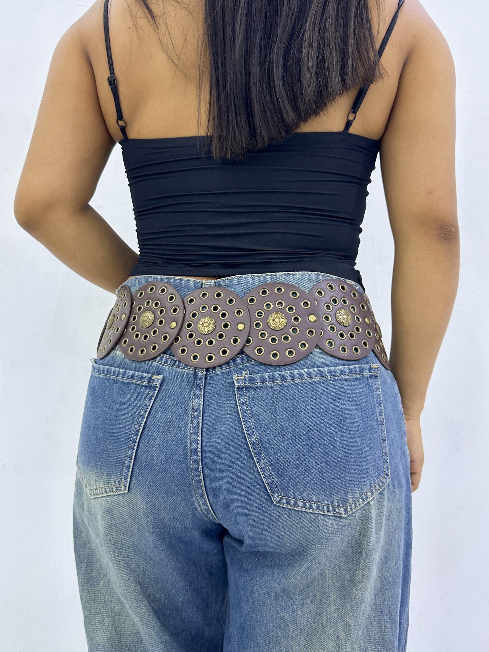 Concho Belt Circulo Marrón Oscuro Dorado