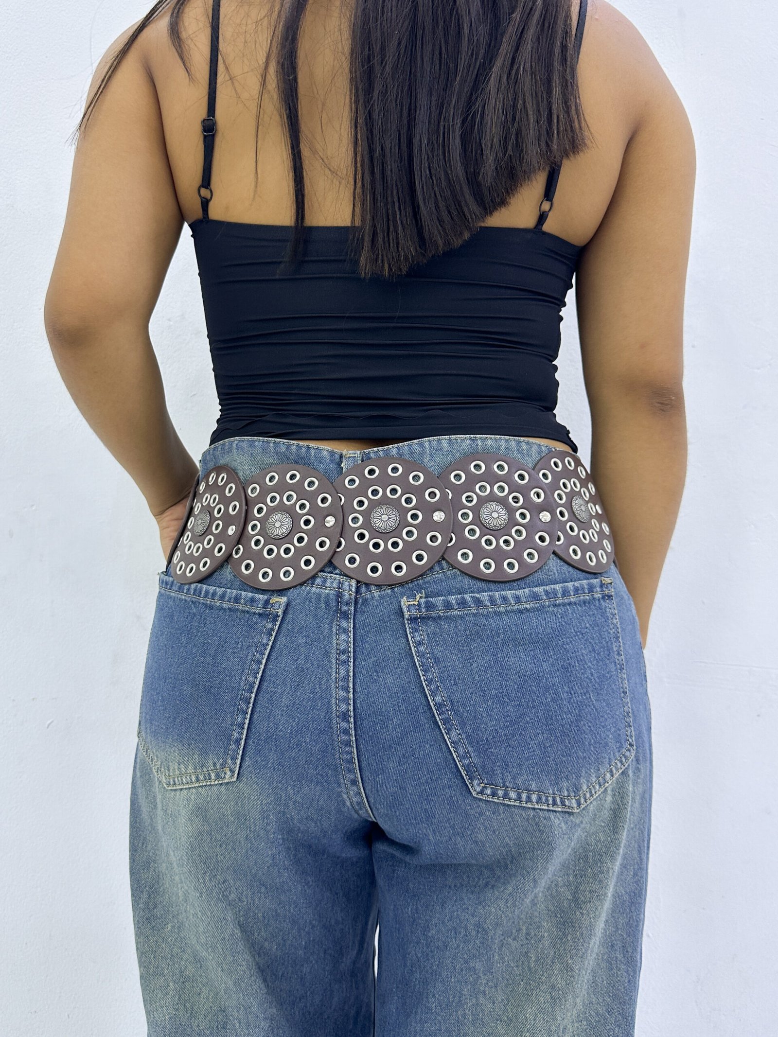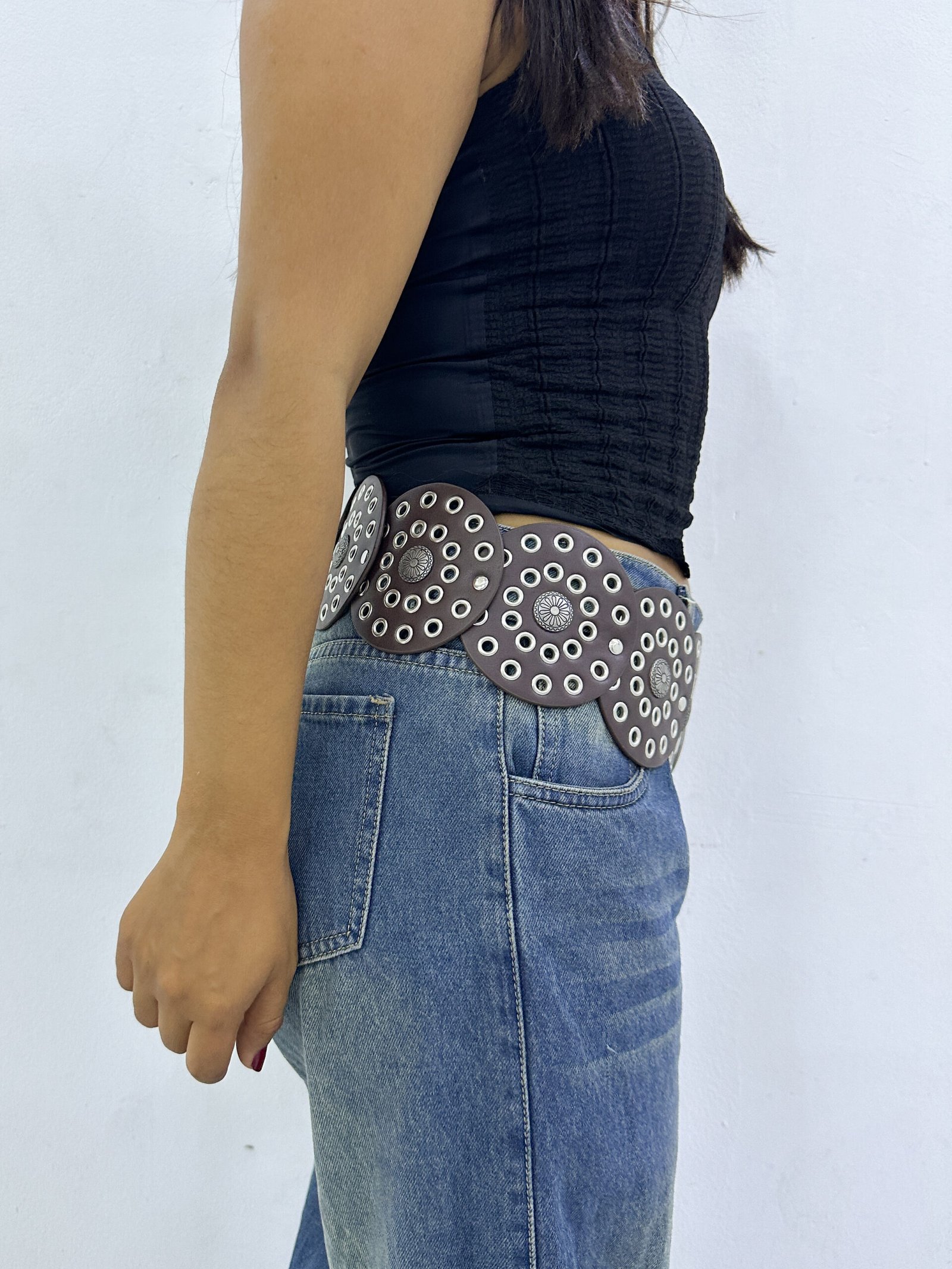 Concho Belt Circulo Marrón Oscuro Plateado
