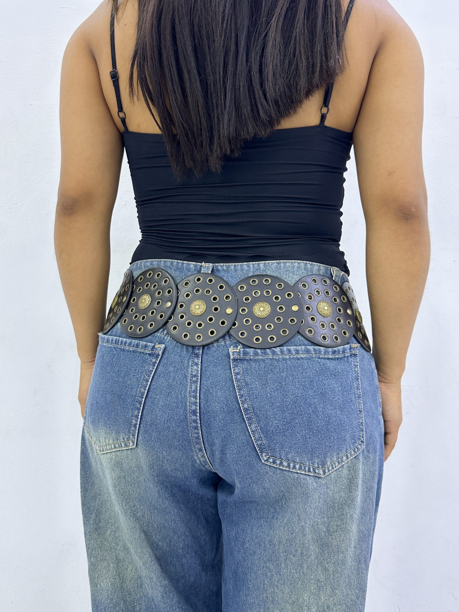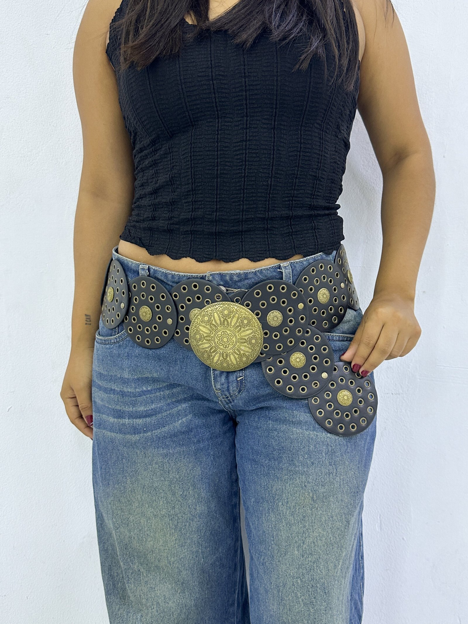 Concho Belt Circulo Negro Dorado