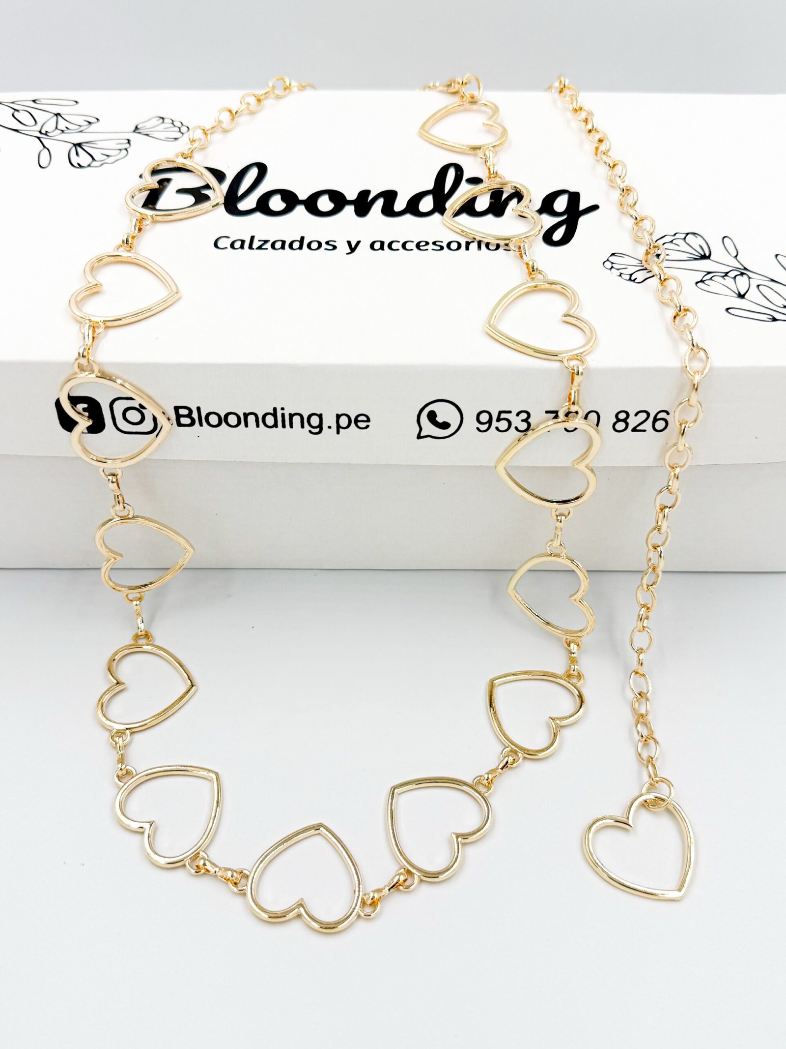 Correa de Cadenas Dorado Eslabones de Corazón