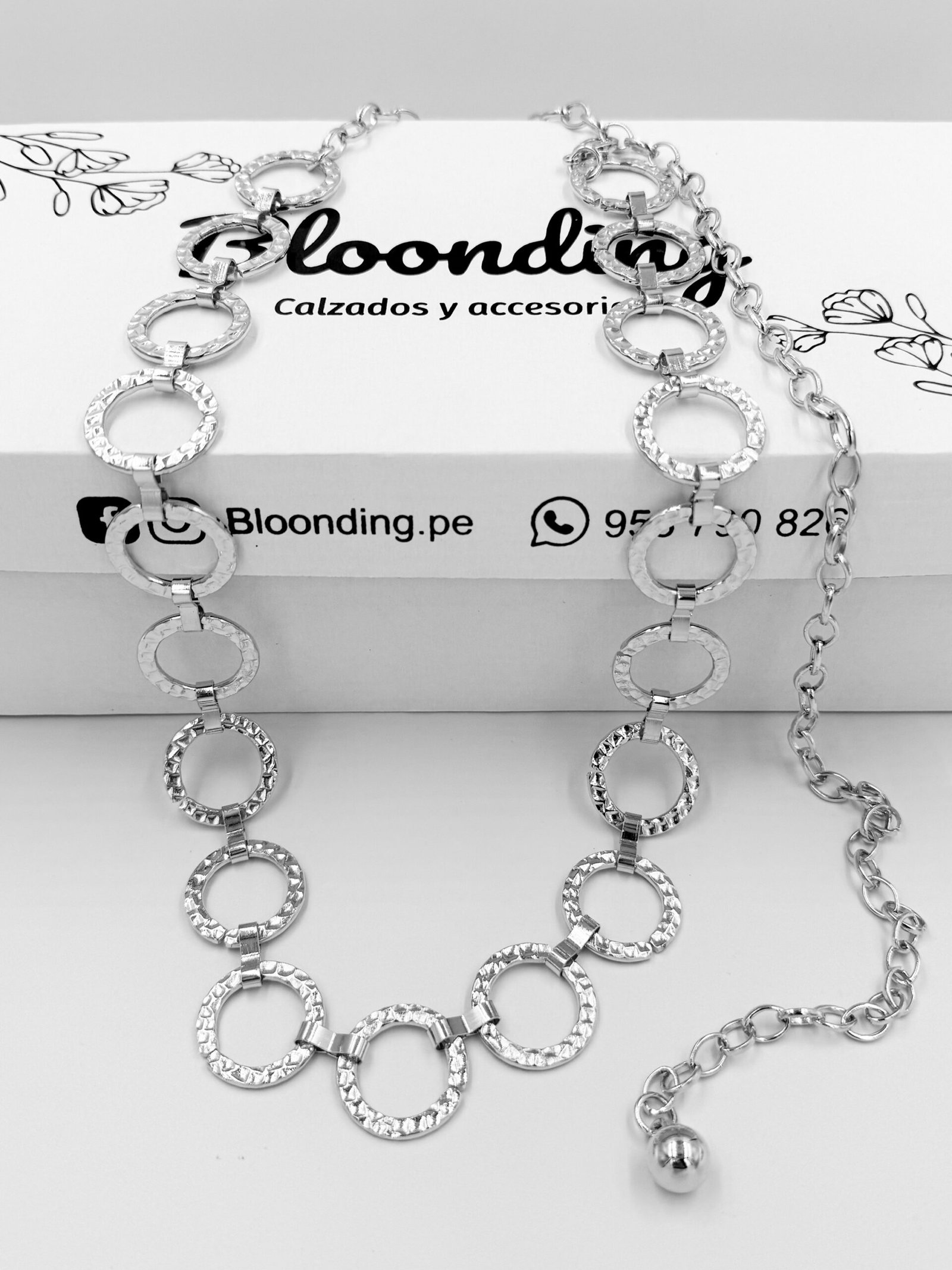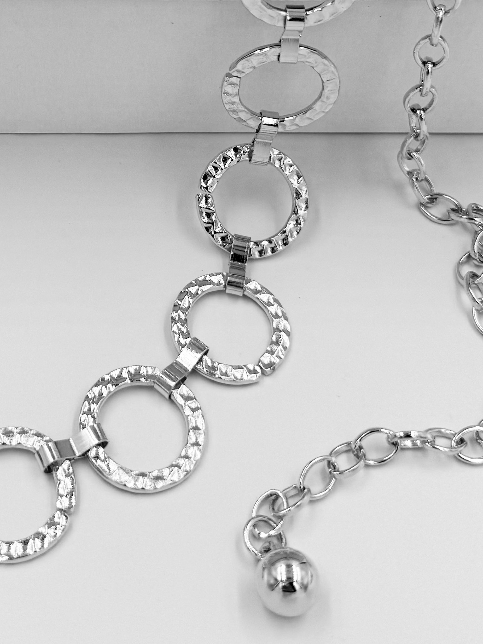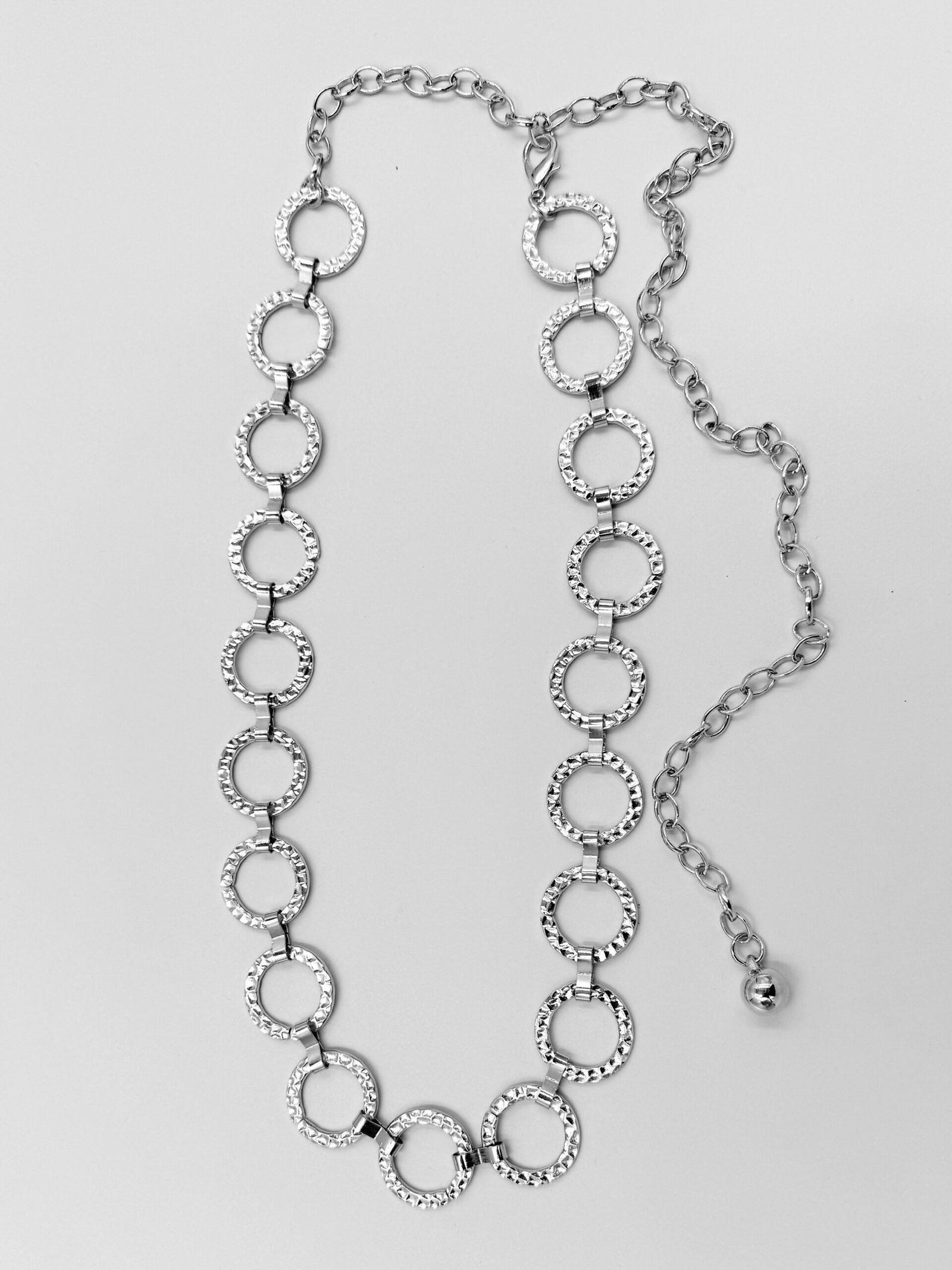 Correa de Cadenas Plateado Aros con Detalle