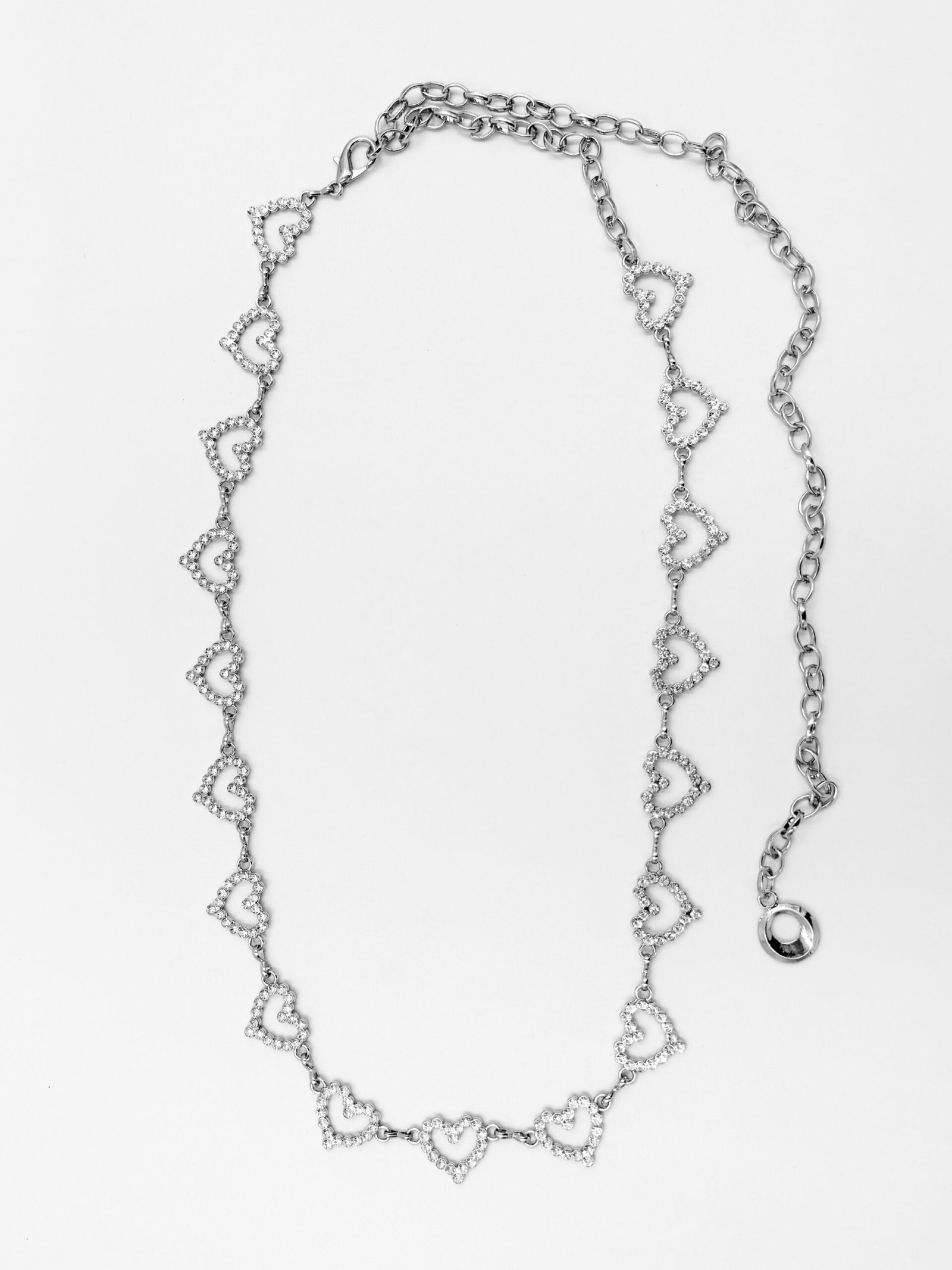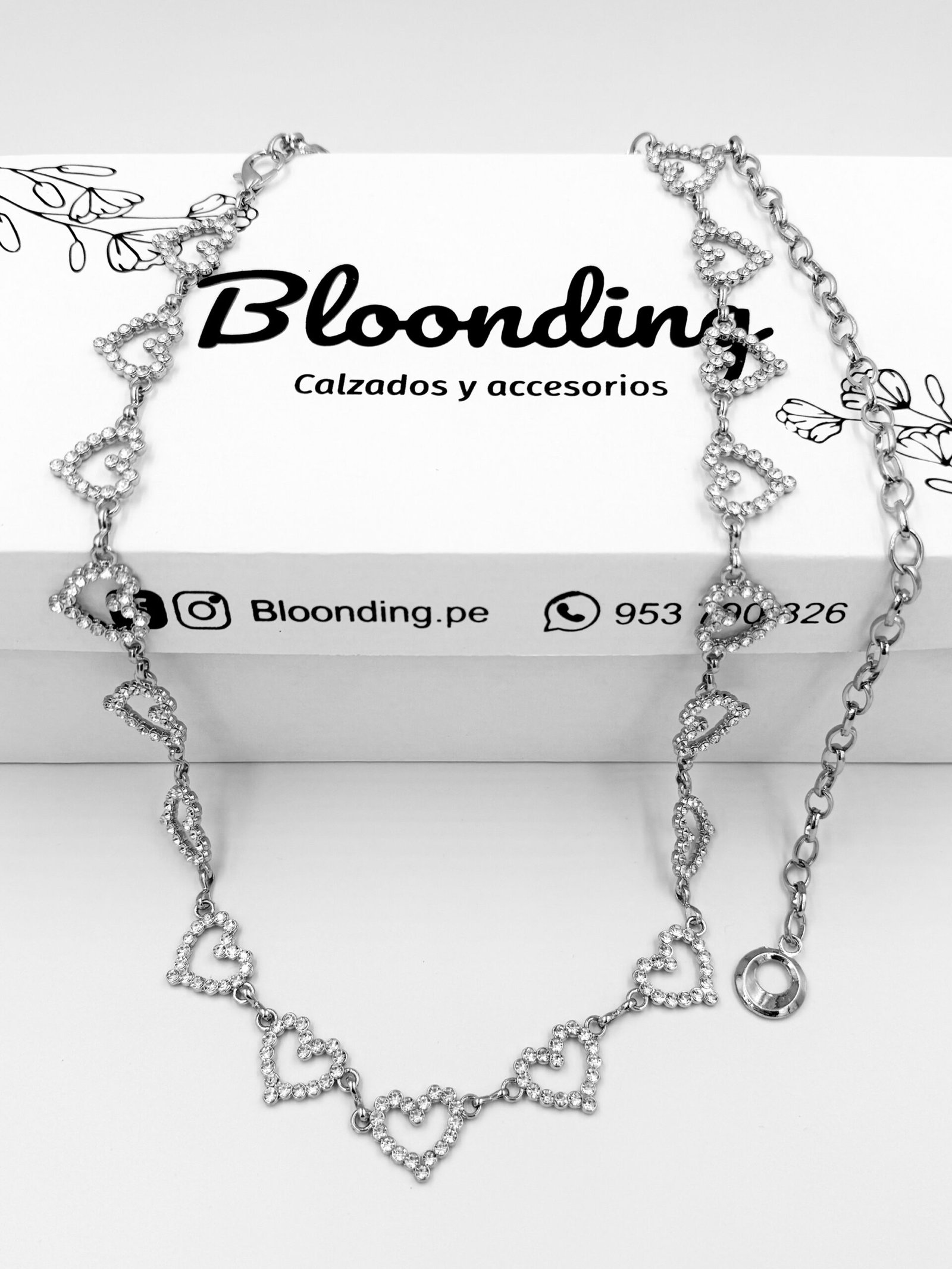Correa de Cadenas Plateado Silueta Corazón con Piedras