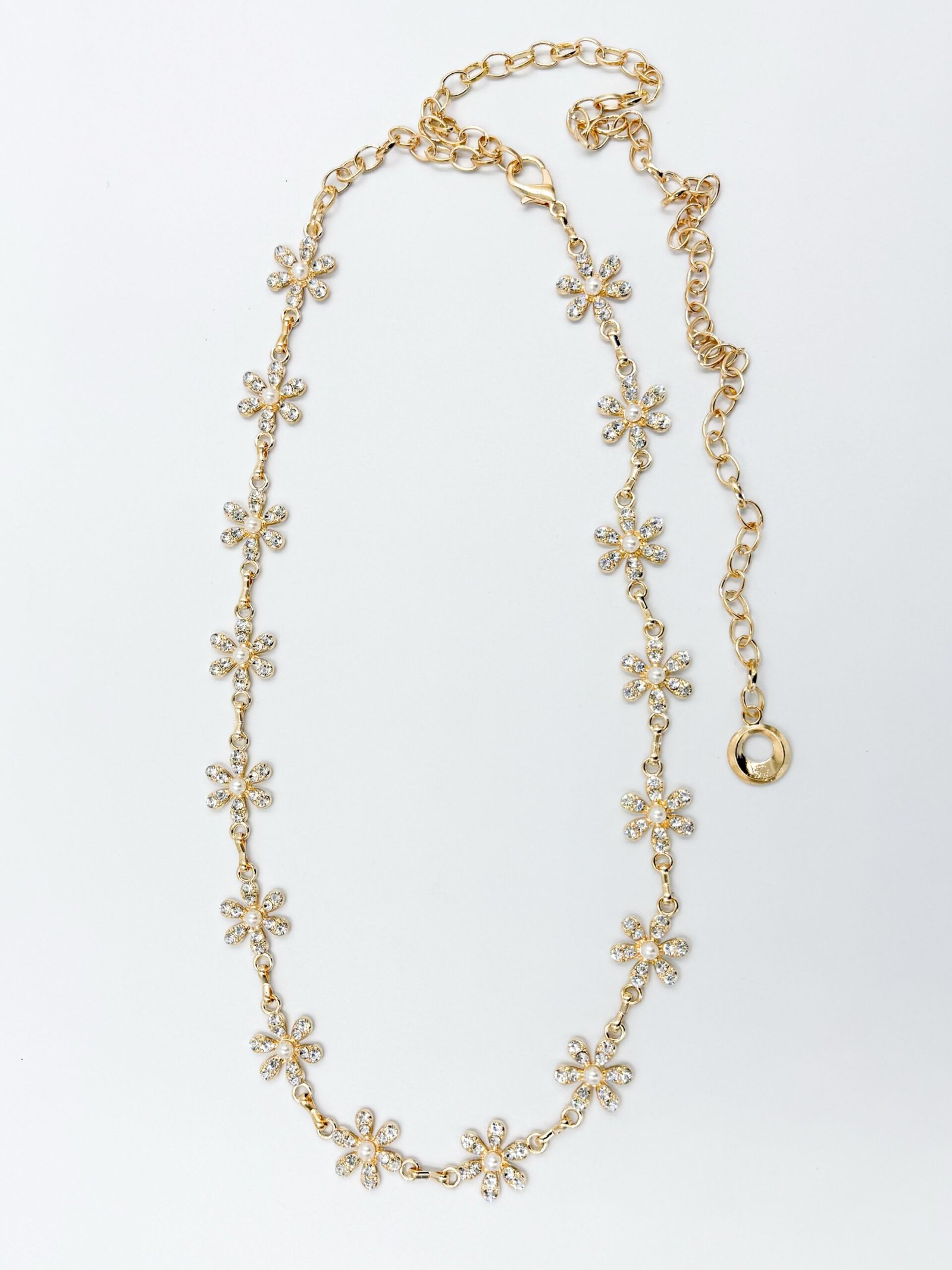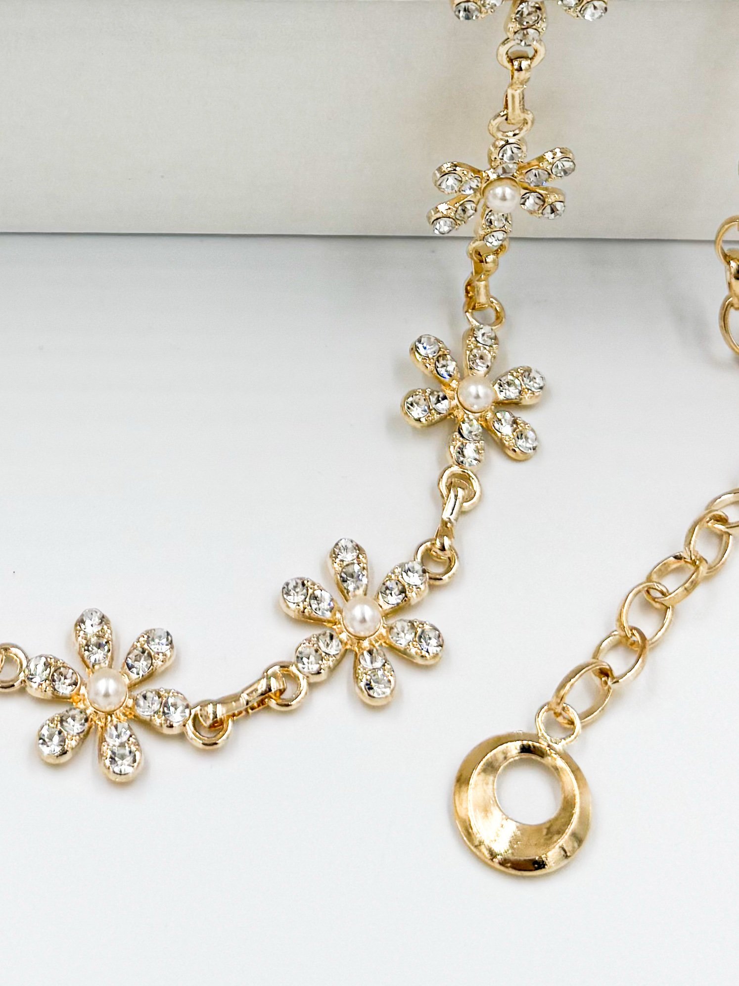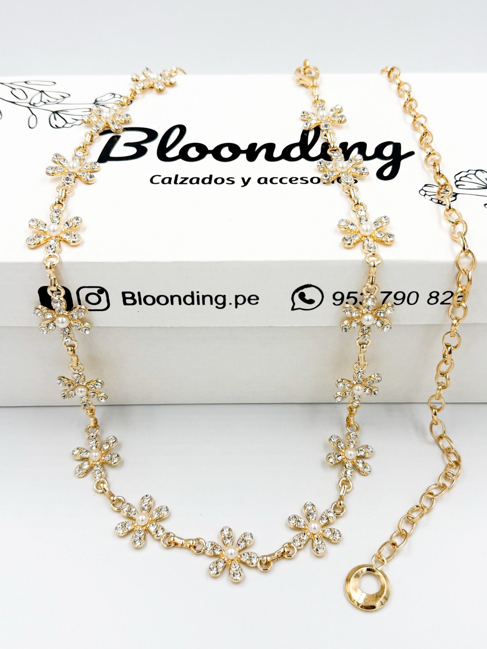 Correa de Cadenas Dorado Flor con Piedras