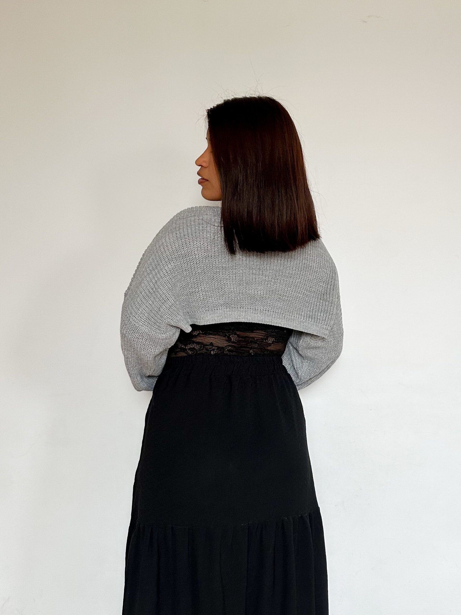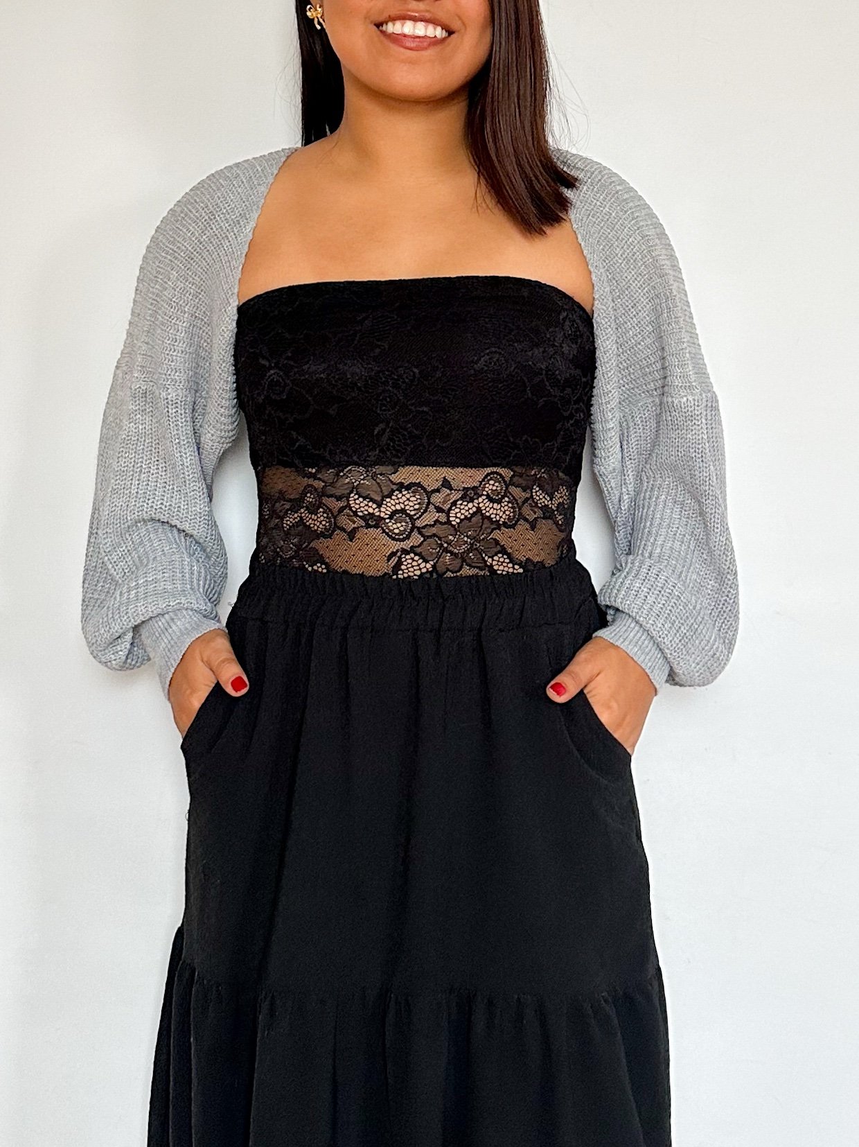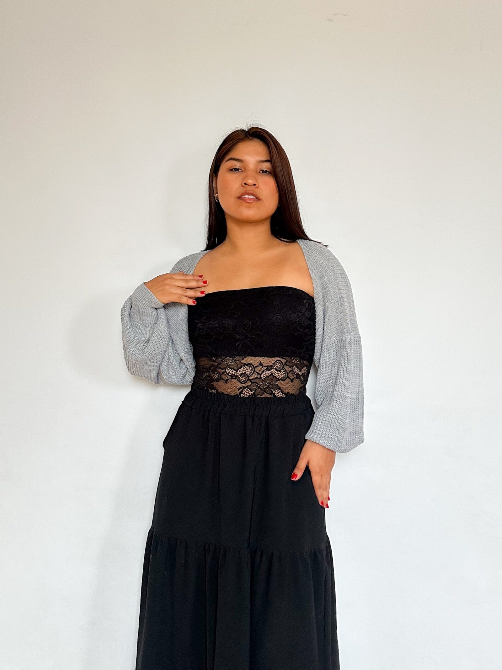 Cárdigan en punto inglés de mangas tipo globo de puño ajustado. Elaborado en hilo tacto algodón, es liviano.